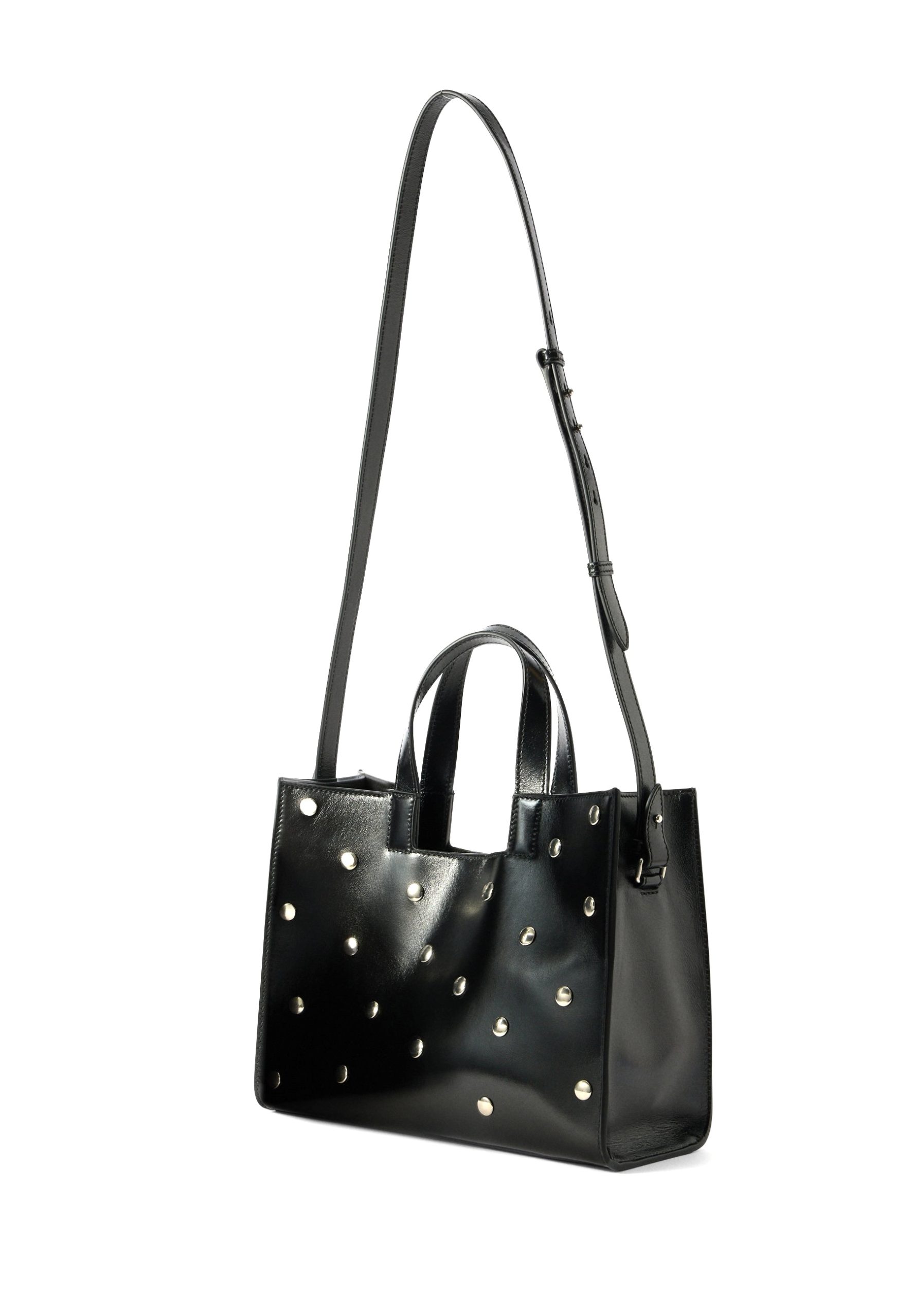 Bally Easy tote bag in a black calf leather with finished in silver stud work.