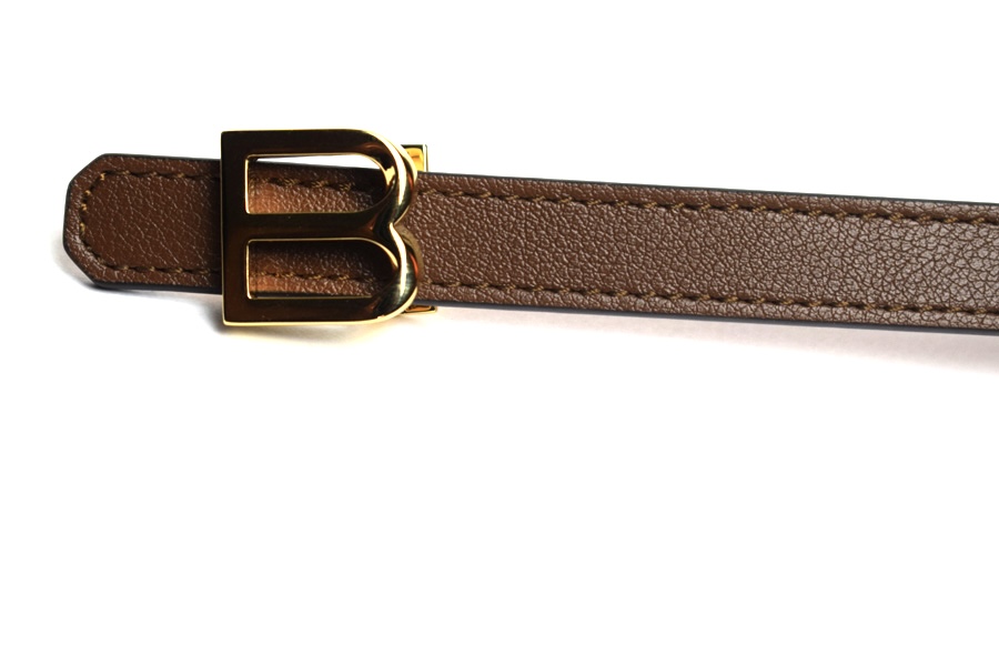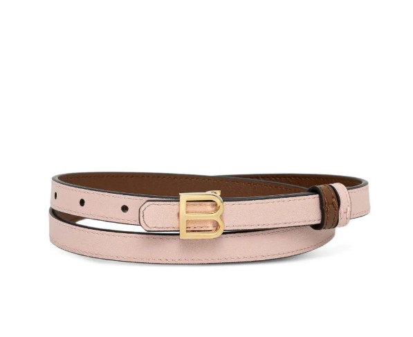 Bally ladies reversible belt with B logo in brown and pink.