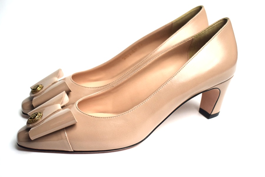 Classic ladies shoes in all-black. These leather pump is finished with an iconic bow from the Bally archives, refreshed with a Crest ornament at the center.