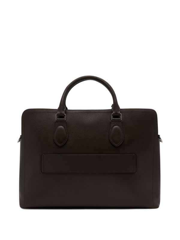 Leather briefcase in a grainy texture with a double top hand hold style for a formal and casual look.