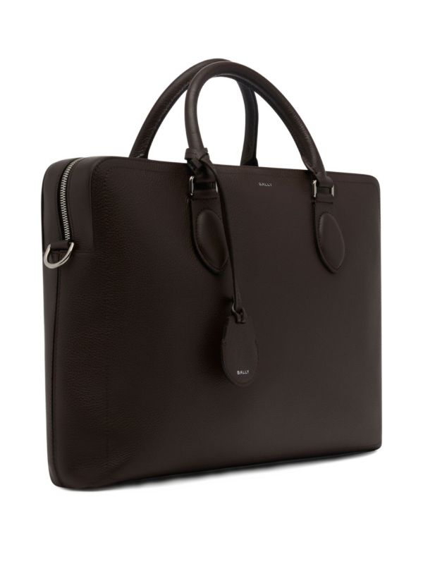 Highlights brown grained texture two rolled top handles zip fastening detachable adjustable shoulder strap logo detail Composition Lining: Nylon 100% Outer: Calf Leather 100%
